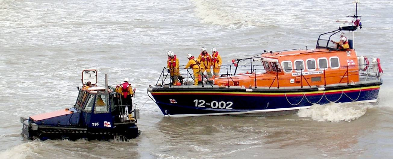 RNLI - Hastings lifeboat station, based in the Old Town, was established in 1858. It currently operates a Mersey class offshore lifeboat, as well as a D class inshore rescue boat. The offshore boat is launched from a carriage which is driven into the sea, and the boat is towed back up the beach on its return, by a caterpillar-tracked tractor (with rubber tracks) waterproofed so that it can operate almost completely submerged, much like the AmphiMax concept.
