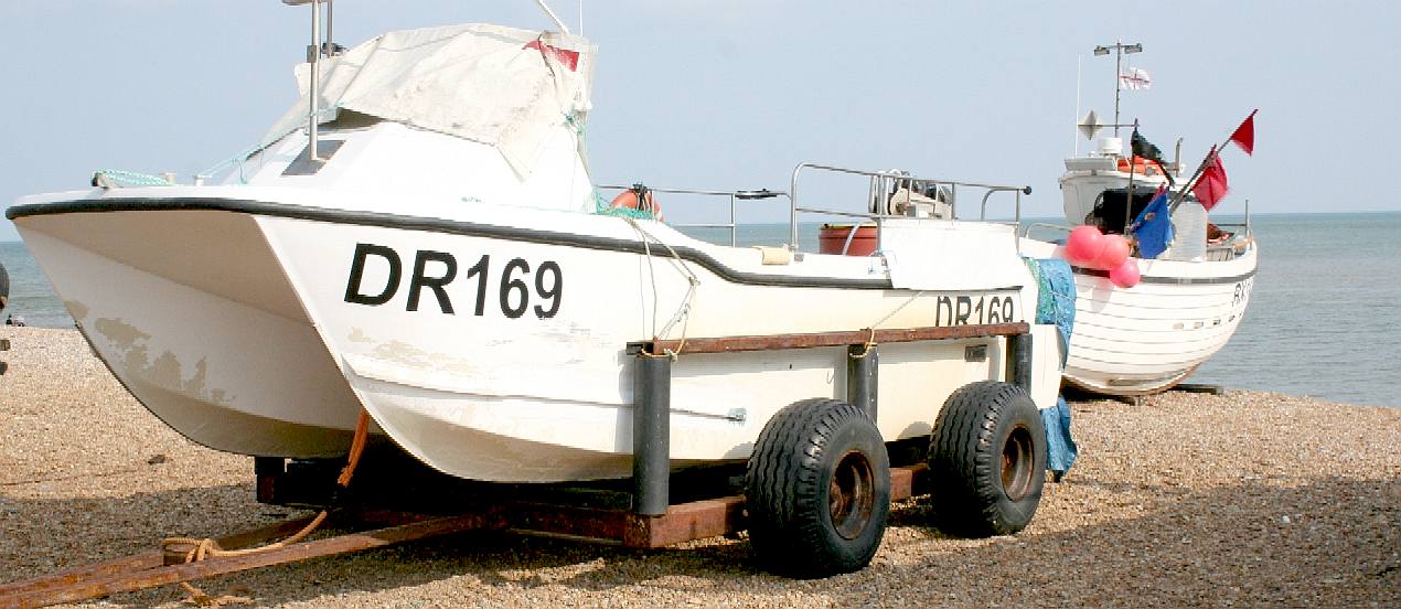 THE STADE - The famous Sussex beach has a steep slope lead in that is ideal for launching, followed by a more gently inclined beach that is ideal for beaching. What is so fascinating about the boats here is the variety of designs all to tackle the awesome task of launching a medium weight vessel from the beach and then recovering it - as economically as possible. As part of our lighting feasibility study, this is the place to start, to see how hundreds of practical fisherman and marine engineers have risen to the challenge. Copyright © May 29 2016, all rights reserved. You will need permission from Bluebird Marine Systems Ltd to reproduce this photograph.