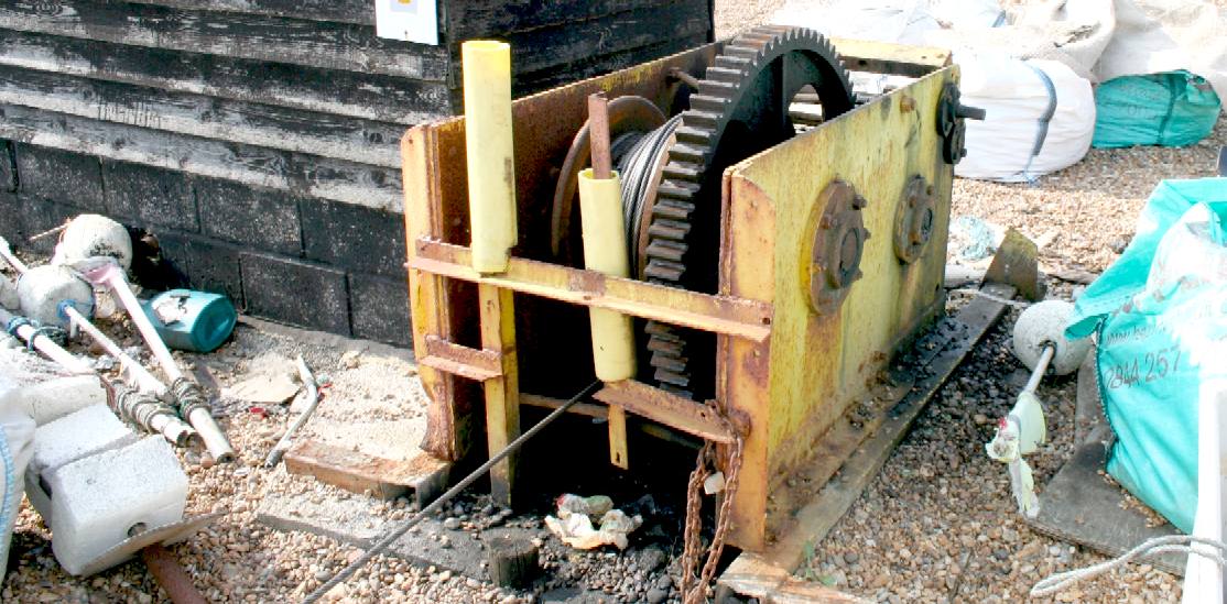 MUSEUM - While half the town is a historical curiosity, the beach is a work place that continues to make history. Not exactly Swiss clock precision, but no nonsense movements, these simple machines have come the end of their working lives, so are now exhibits outside the net huts that are listed buildings and a feature you will not see anywhere else. Mind your fingers! Copyright © May 29 2016, all rights reserved. You will need permission from Bluebird Marine Systems Ltd to reproduce this photograph, except for private study or educational review.